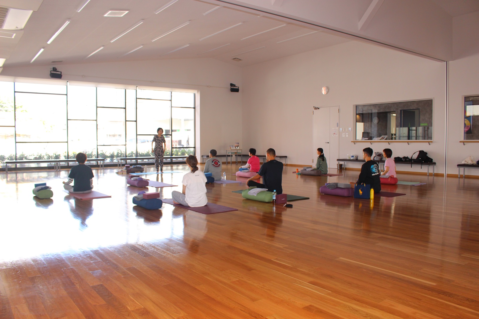 京都有数の広さを誇る多目的ホールです。床は足に優しいこだわりのフローリング張りです。